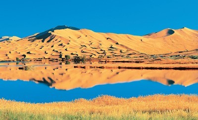 “巴丹吉林沙漠—沙山湖泊群”不僅有一望無際的大漠沙海,更有被稱為“五絕”的奇峰、鳴沙、湖泊、神泉、古廟。