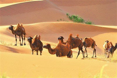 肉蓯蓉、梭梭、雙峰駝、水鳥等豐富的動植物生長棲息于此,為這里增添了勃勃生機,神秘且顏色鮮艷的丘間湖泊大多為咸水湖,更成為了鹵蟲、軟體動物和部分魚類繁盛的有利棲息地,湖泊周圍還多生長著茂密的蘆葦以及沙柳、沙棘等植物,為沙漠動物群落的生長提供了基礎。