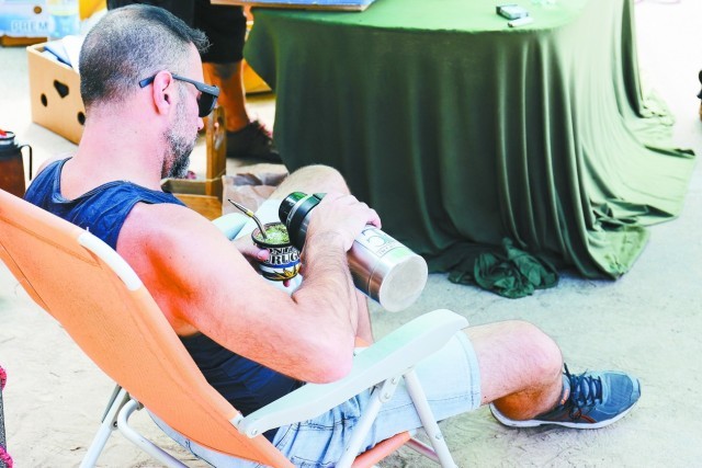 在阿根廷和烏拉圭的街頭巷尾、商場車站,時常能看到帶著保溫壺的人,難道他們也有喝熱水的習慣?仔細觀瞧,這些人的另一只手上握著一只配吸管的杯子。當地人說,這套裝備是喝馬黛茶用的,保溫壺提供泡茶需要的熱水。