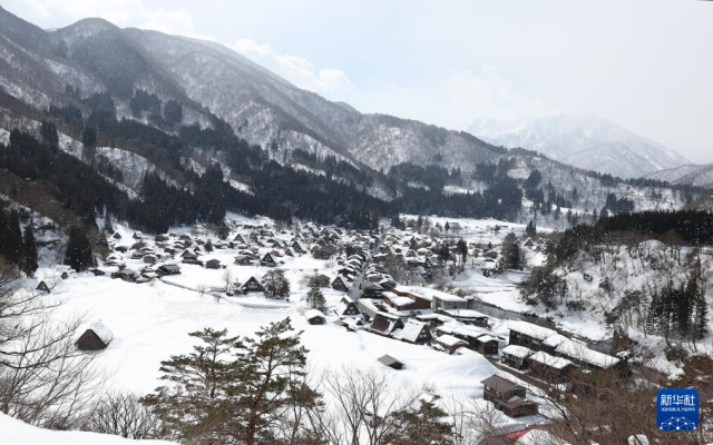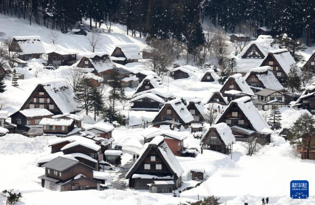 這是2月26日拍攝的日本岐阜縣白川鄉“合掌造”村落景色。