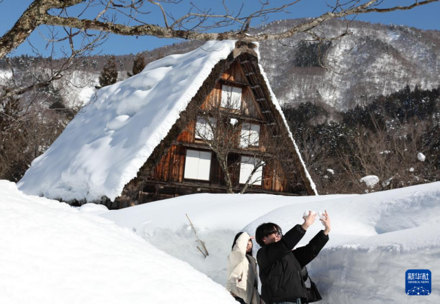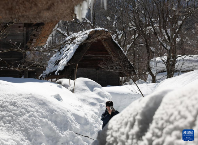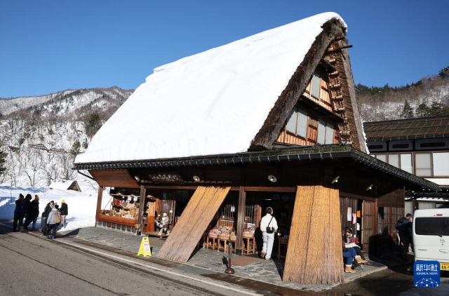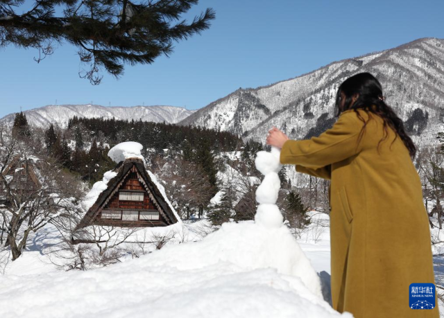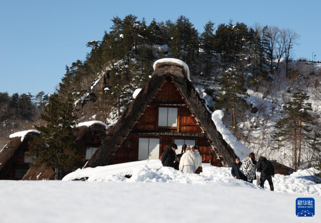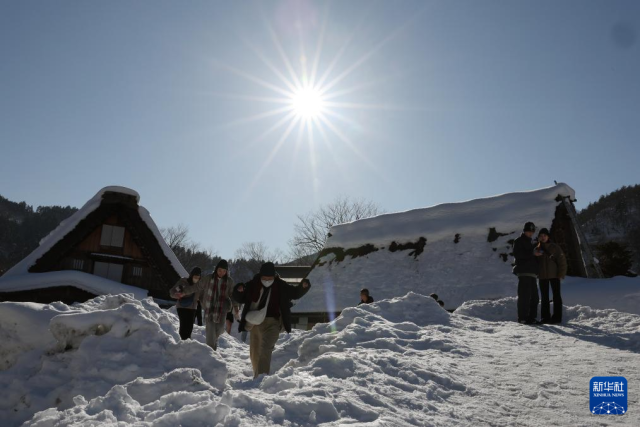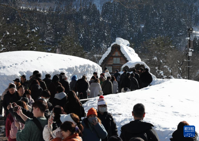 2月25日,游客在日本岐阜縣白川鄉的“合掌造”村落參觀游覽。