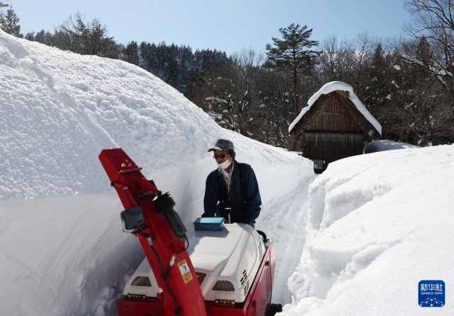 2月25日,工作人員在日本岐阜縣白川鄉的“合掌造”民家園博物館清理積雪。