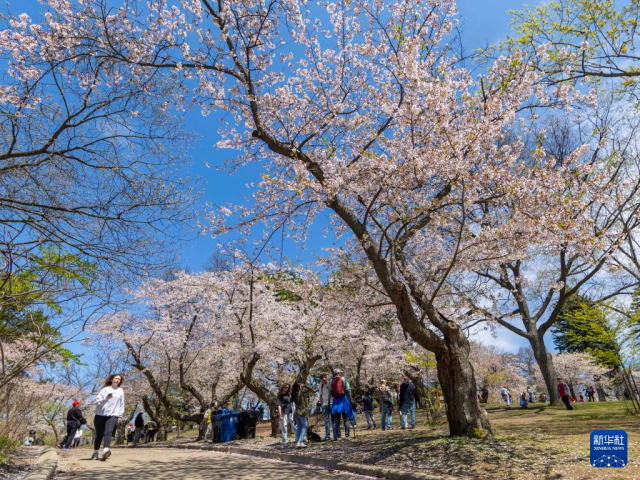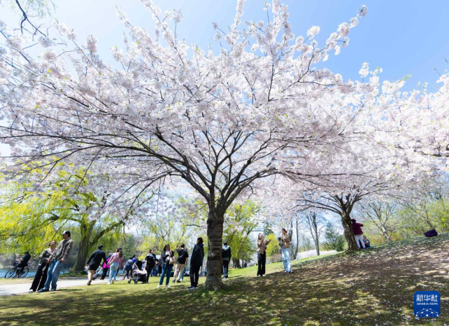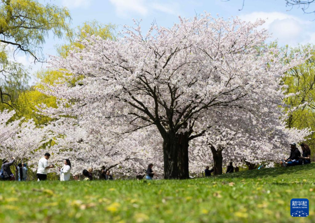 5月6日,人們在加拿大多倫多的一處公園內欣賞盛開的櫻花。