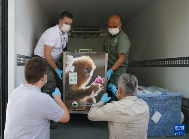 5月14日,在比利時布魯塞爾機場,工作人員轉運金絲猴。