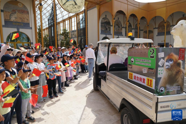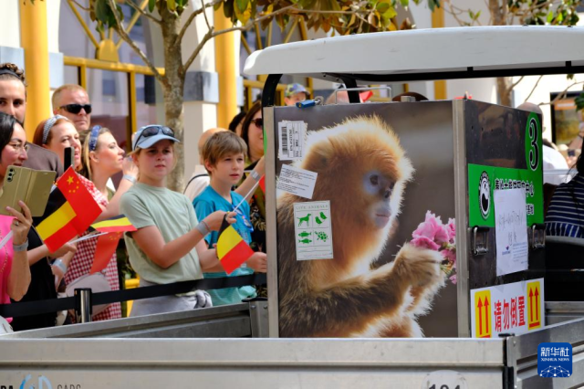 5月14日,在比利時布呂熱萊特,人們歡迎金絲猴抵達天堂動物園。