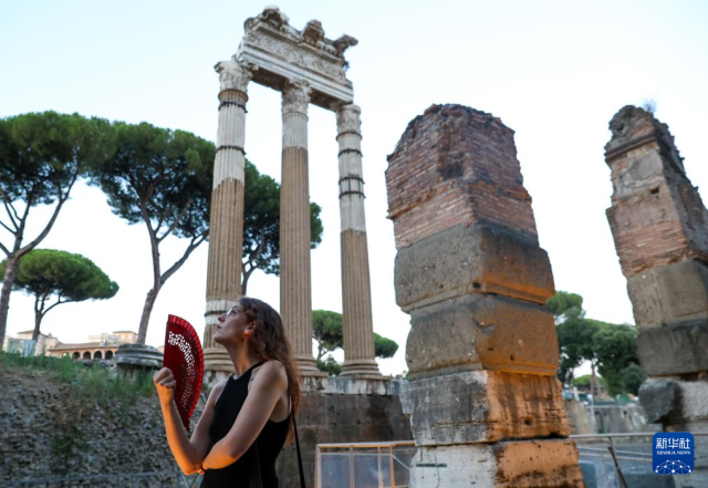 7月5日傍晚,在意大利羅馬,游客在古羅馬廣場參觀。