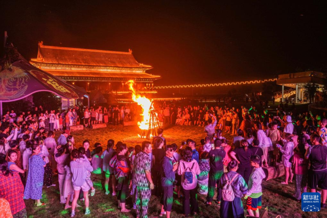 7月20日,在山東省榮成市成山頭福如東海景區,游客參加篝火晚會。