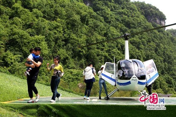 在黃龍洞景區,直升機低空游覽項目熱度攀升。伴隨著引擎的轟鳴,直升機載著游客緩緩升空,目之所及皆是武陵源的奇山異水。游客往下看去,千峰競秀的石英砂巖峰林如劍指蒼穹,山間云霧繚繞時宛如仙境,陽光穿透云層灑在峰林溝壑間,勾勒出明暗交錯的絕美輪廓。同時,生態廣場的田園風光、索溪河的綠波蕩漾、武陵源城區的屋舍錯落等美景也盡收眼底,開啟旅游的全新視角。不少游客表示,在空中俯瞰,更能感受到大自然的鬼斧神工。