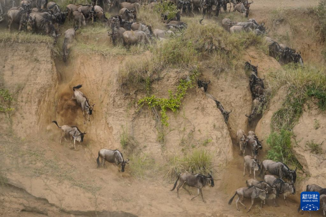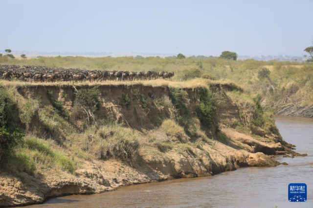 7月30日,在肯尼亞馬賽馬拉國家保護區,成群的角馬聚集在馬拉河邊準備渡河。