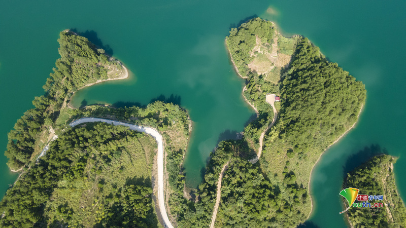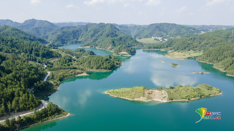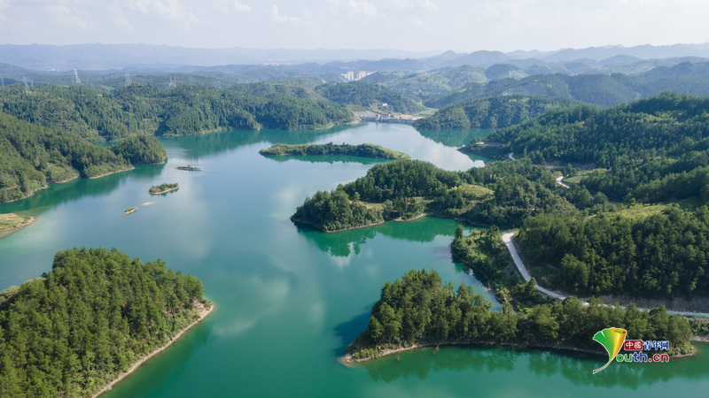 夏日,位于貴州省黔東南苗族侗族自治州岑鞏縣大有鎮的下溪水庫水體清澈,山、水、林、路相映成趣,滿目蒼翠,景色如畫。