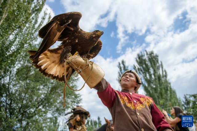 8月2日,一名獵人在吉爾吉斯斯坦伊塞克湖南岸舉行的民俗藝術節上表演狩獵。