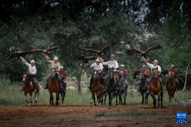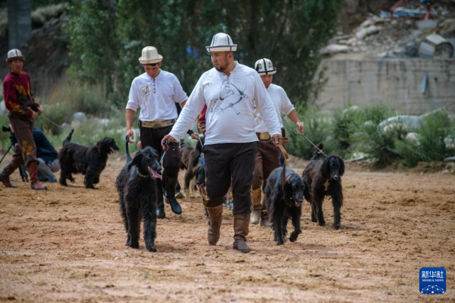 8月2日,獵人們在吉爾吉斯斯坦伊塞克湖南岸舉行的民俗藝術節上表演狩獵。