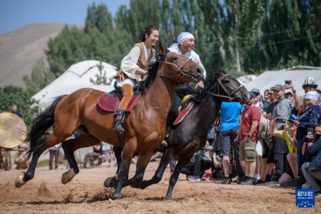 8月2日,騎手們在吉爾吉斯斯坦伊塞克湖南岸舉行的民俗藝術節上展示馬術。