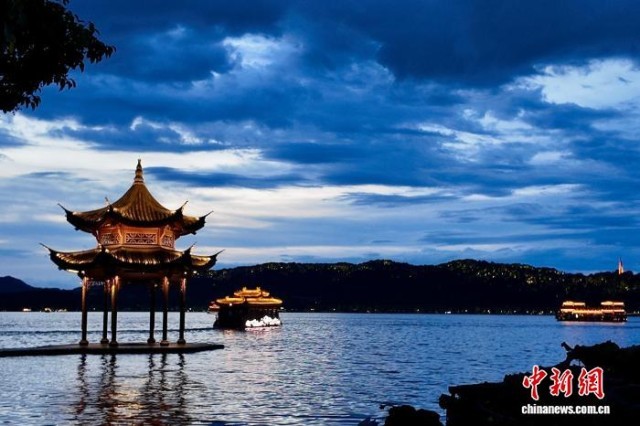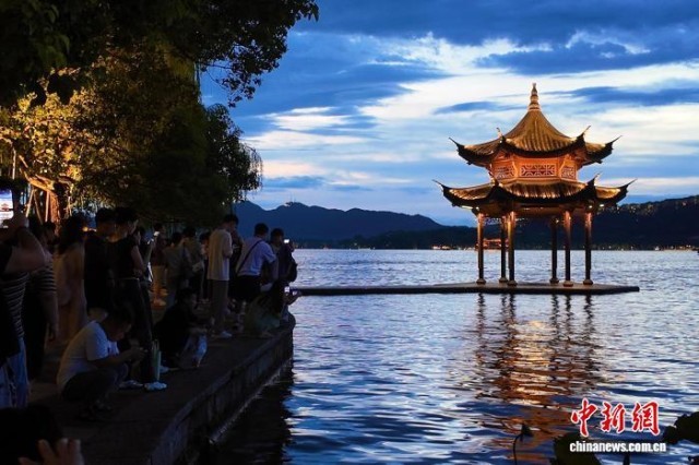8月6日,傍晚的西湖美景。當日,浙江杭州,傍晚的西湖景色美如畫,吸引游客打卡。中新社記者 錢晨菲 攝