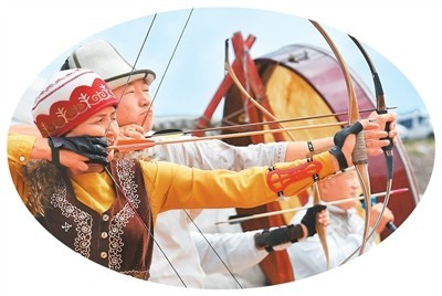 近日,在吉爾吉斯斯坦比什凱克附近的伊塞克湖南岸,人們在狩獵節上比賽射箭。