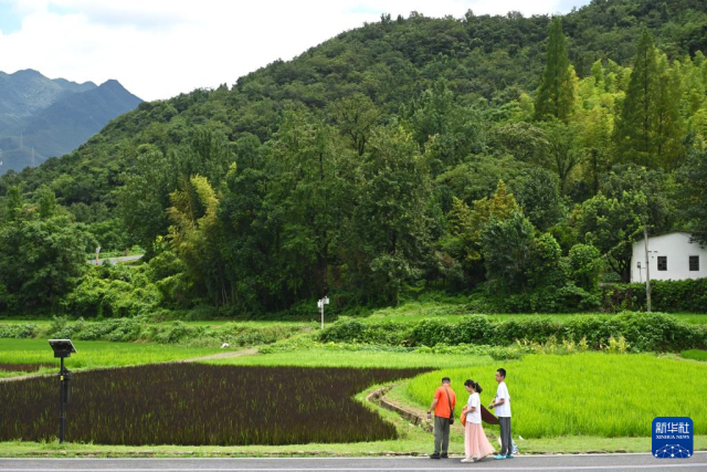 8月6日,游客在安吉縣余村五彩田園景觀游玩。