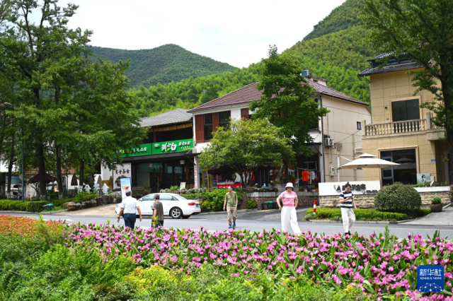 8月6日,游客在安吉縣余村參觀游覽。
