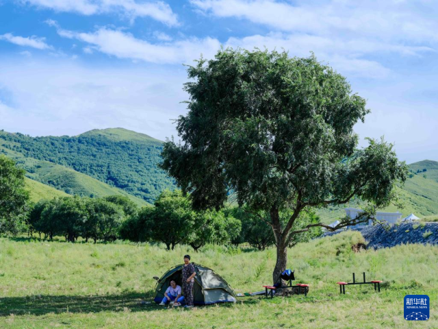 8月9日,游客在內蒙古興安盟科爾沁右翼前旗烏蘭毛都草原上露營休閑。