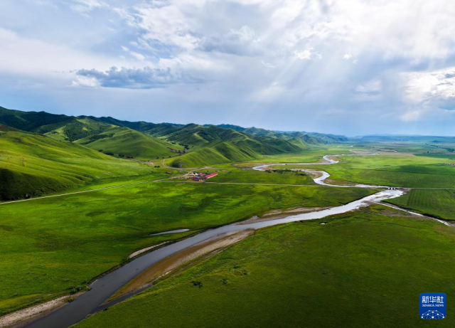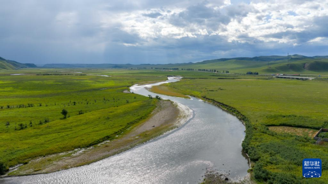 這是8月9日在內蒙古興安盟科爾沁右翼前旗烏蘭毛都草原上拍攝的烏蘭河風光(無人機照片)。