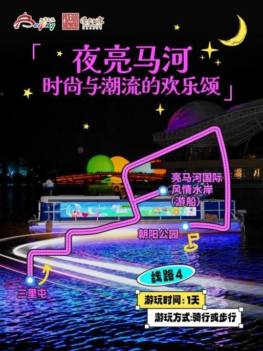 “夜亮馬河”:從三里屯潮玩店啟程,乘游船穿越亮馬河光影畫卷,終抵朝陽公園星空草坪派對;