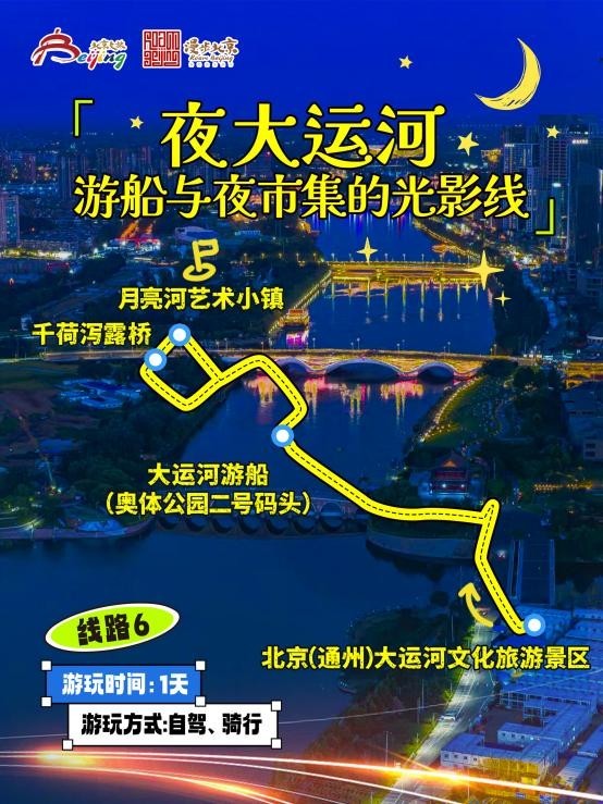行程:北京(通州)大運河文化旅游景區→大運河游船(奧體公園二號碼頭)→千荷瀉露橋→月亮河藝術小鎮