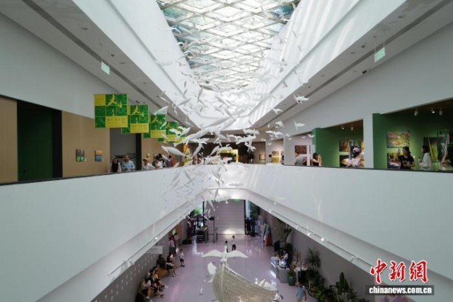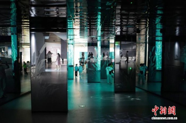 8月21日,游客在博物館內參觀。暑期進入尾聲,位于杭州西溪濕地的中國濕地博物館人氣不減,多個展廳的豐富內容呈現出生物多樣性的魅力,游客在此感受人與自然和諧共生之美。中新社記者 張煜歡 攝