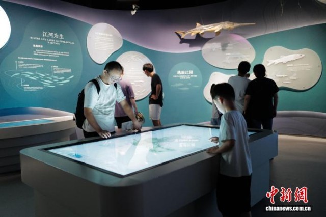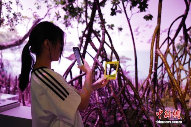 8月21日,游客在互動設備前學習濕地知識。暑期進入尾聲,位于杭州西溪濕地的中國濕地博物館人氣不減,多個展廳的豐富內容呈現出生物多樣性的魅力,游客在此感受人與自然和諧共生之美。中新社記者 張煜歡 攝