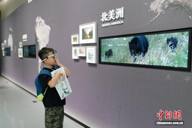 8月21日,游客欣賞生物多樣性攝影展覽。暑期進入尾聲,位于杭州西溪濕地的中國濕地博物館人氣不減,多個展廳的豐富內容呈現出生物多樣性的魅力,游客在此感受人與自然和諧共生之美。中新社記者 張煜歡 攝