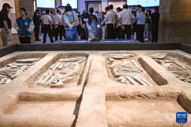這是8月28日拍攝的展覽中的車馬坑模型。