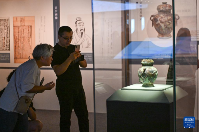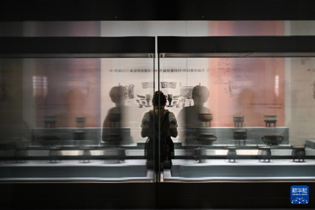 8月28日,觀眾在參觀展覽中的各類青銅器。