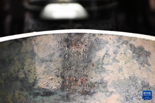 這是8月28日在展覽中拍攝的堇鼎內壁的銘文。