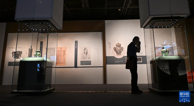 琉璃河遺址出土文物克盉(左)、克罍在展覽中同時展出(8月28日攝)。