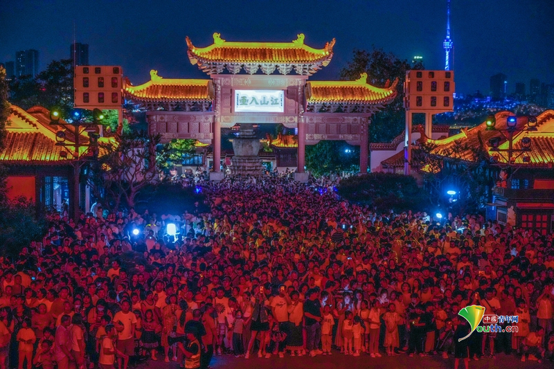 8月26日晚,武漢市黃鶴樓景區內游人如織,《夜上黃鶴樓》沉浸式演出吸引大量游客觀賞、游玩,助推武漢市夏日“夜經濟”持續升溫?!兑股宵S鶴樓》成為武漢熱門的夜游品牌。