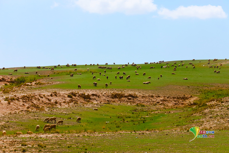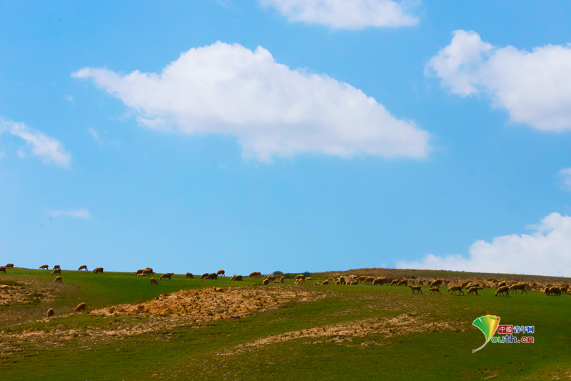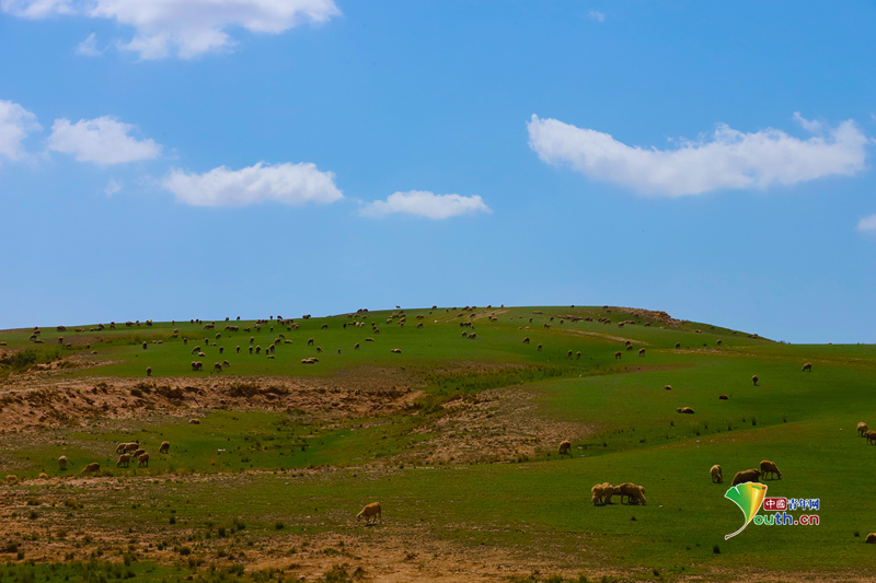新疆阿克蘇:阿克布拉克草原綿延起伏 成群牛羊分布其間