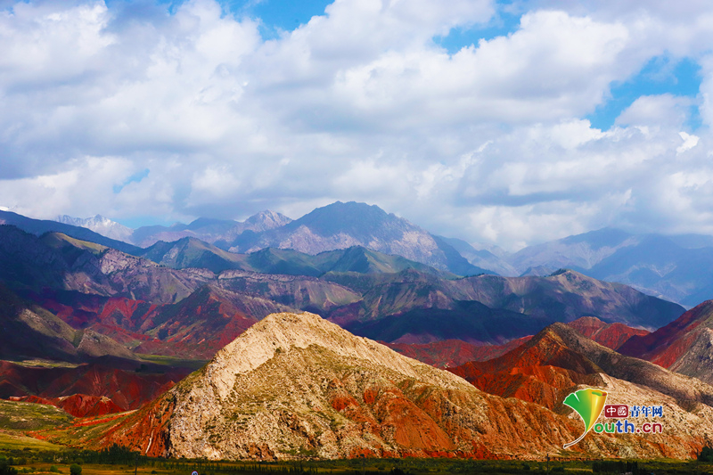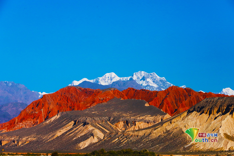 新疆溫宿:天山托木爾景區斑斕山體映雪山