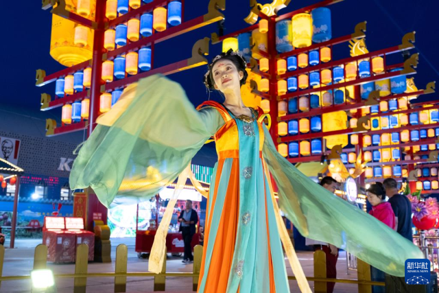9月4日,在內蒙古烏蘭察布市“烏蘭察布之夜”特色街區,演員在表演舞蹈。