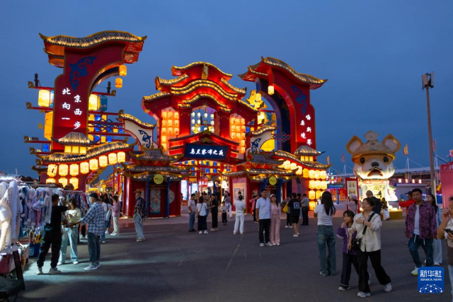 這是9月4日拍攝的內蒙古烏蘭察布市的“烏蘭察布之夜”特色街區。