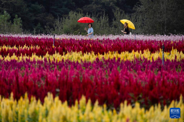 9月7日,游客在韓國江原道鐵原郡欣賞鮮花。