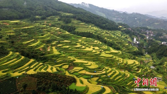 圖為廣西三江侗族自治縣同樂苗族鄉高武村的梯田風光。