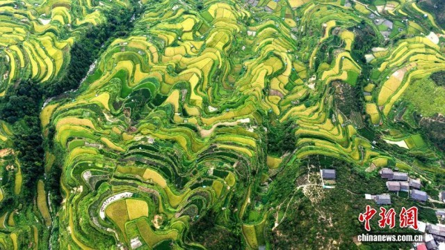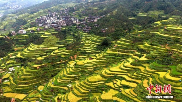 圖為廣西三江侗族自治縣同樂苗族鄉桂書村和高武村的梯田風光。