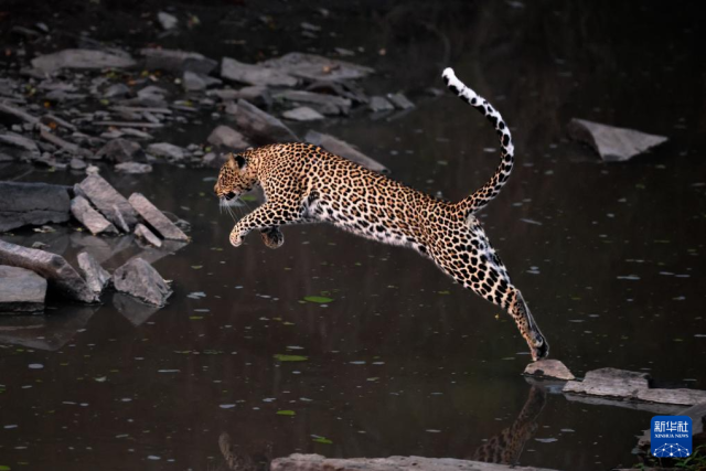 這是8月30日在肯尼亞馬賽馬拉國家保護區拍攝的跳躍中的花豹。