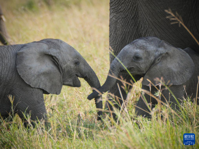 9月7日,在肯尼亞馬賽馬拉國家保護區,兩頭小象在嬉戲。