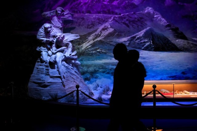 中國共產黨歷史展覽館,“飛躍中國”項目前聚滿排隊的游客。在這個大型球幕影院里,觀眾們可以坐上“飛行器”體驗5D觀影,新時代中國的壯麗江山仿佛觸手可及……