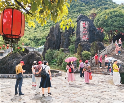 來自粵港澳大灣區的游客在玉石林景區游玩。