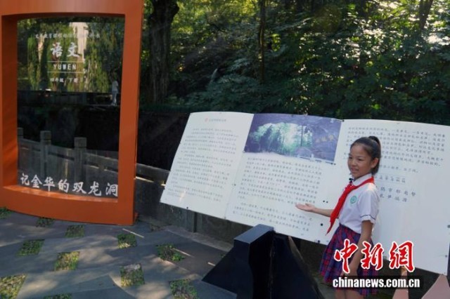 10月13日,當地小學生為游客講解金華雙龍洞。任海霞 攝