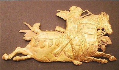 吐蕃騎射武士形飾牌。